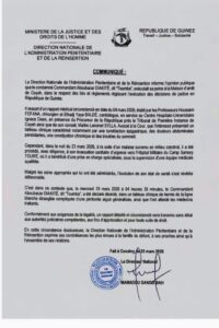 La Direction Nationale de l’Administration Pénitentiaire et de la Réinsertion indique qu’un rapport détaillé sera transmis aux autorités judiciaires compétentes pour les suites nécessaires.